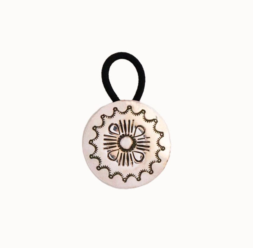 Traditional hair band in sterling silver with stamped traditional geometric designs.